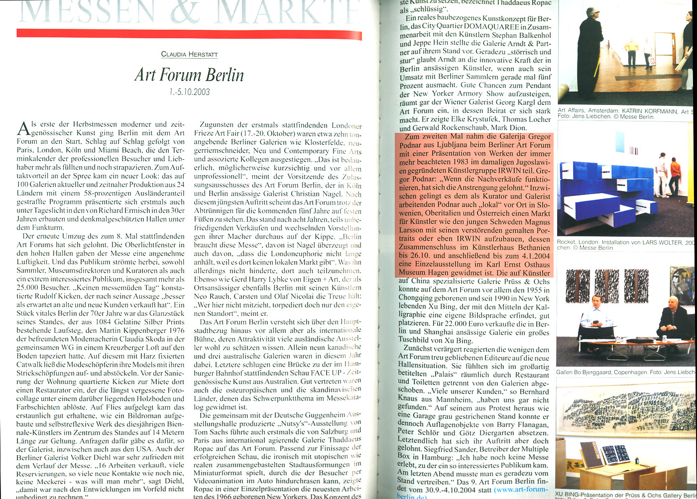 Claudia Herstatt: Art Forum Berlin, in: Kunstforum International 11/12 2003, S. 370-371
