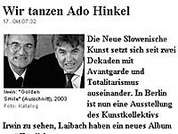 Ulrich Gutmair: Wir tanzen Ado Hinkel, in: Netzeitung, 17.10.2003 http://www.netzeitung.de/voiceofgermany/