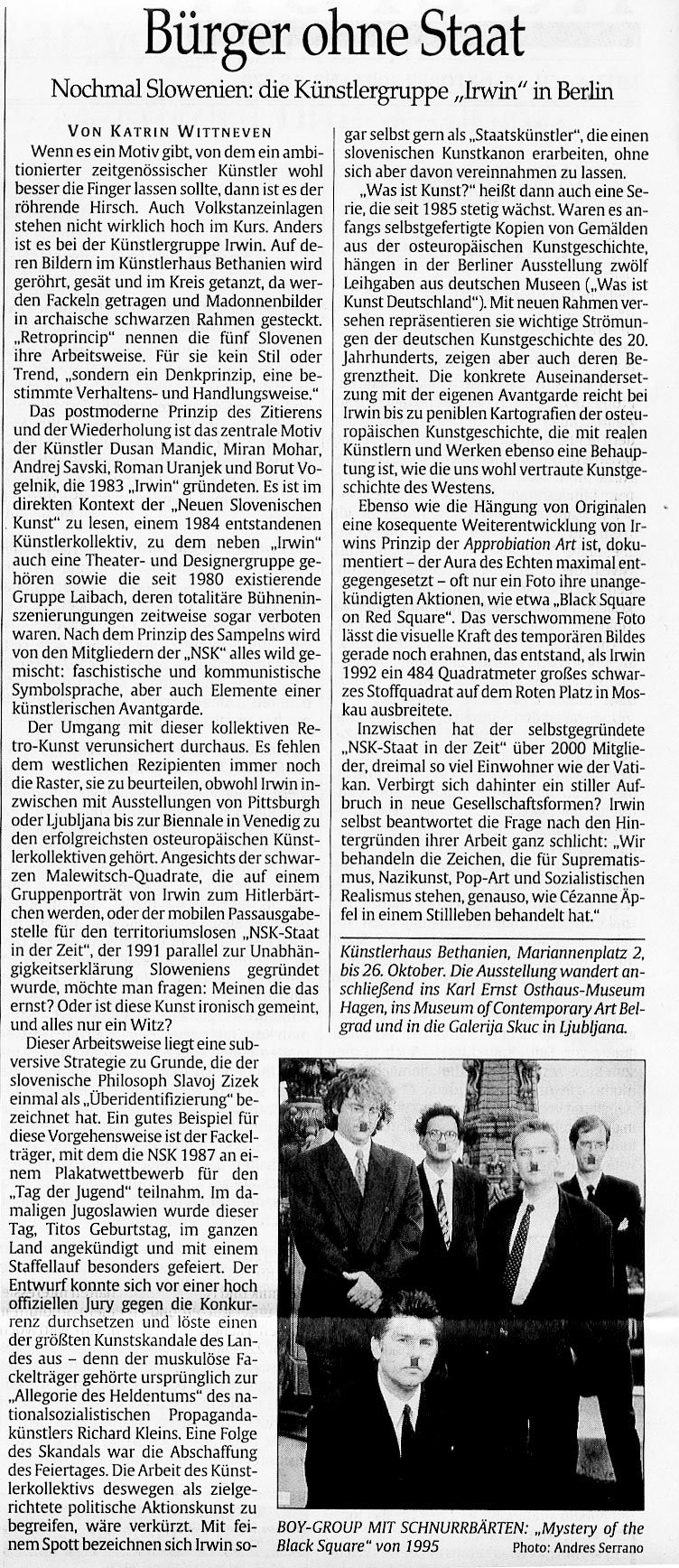 Damjana Kolar: Irwin v Berlinu, in: Mladina (Ljubljana), 24.9.2003 http://www.mladina.si/dnevnik/37385/