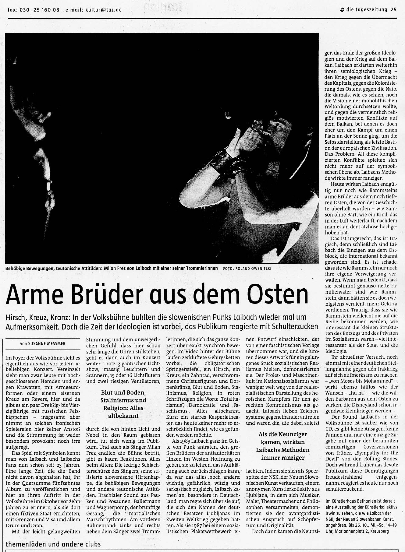 Susanne Messmer: Arme Brüder aus dem Osten, in: Die Tageszeitung, 17.10.03, S. 25 |